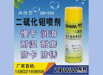Introduction:The product is a MoS2 lubricant agent, which is composed of highly refined lubricating oil with mixture of various additives and solvents through the process of pressure loading. It provides good thermal stability, resistance to extreme pressure, anti-rust/lubricating properties and strong adhesion.(上海在邦電話15802169858)